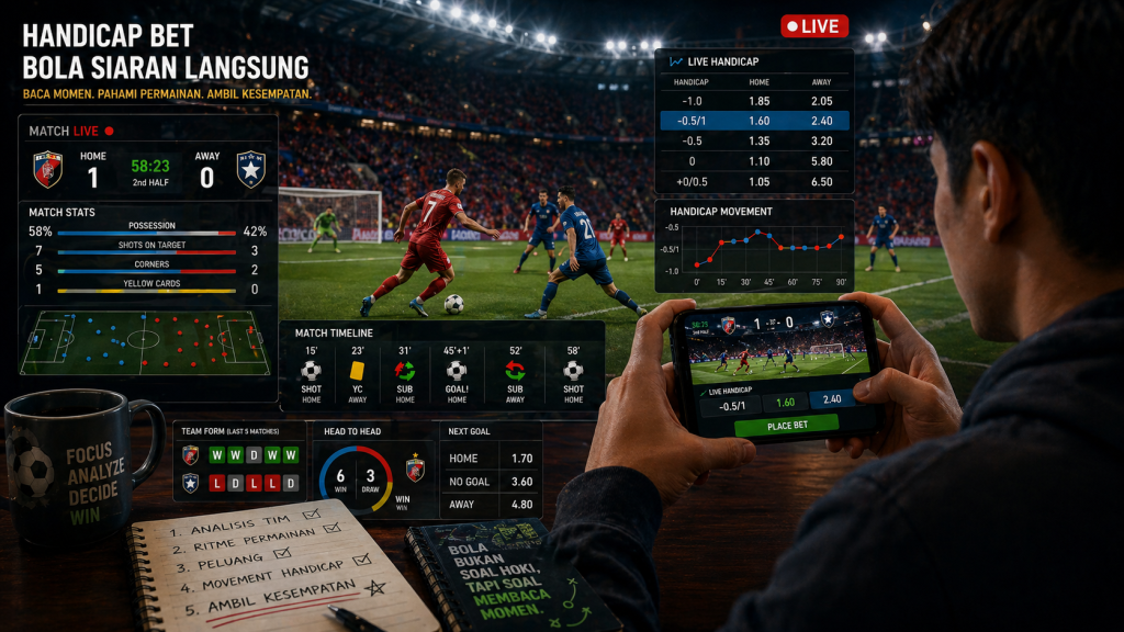 Berbeda dengan pasaran statis, handicap dalam siaran langsung bersifat sangat dinamis. Angka bisa berubah dalam hitungan detik—tergantung pada jalannya pertandingan.